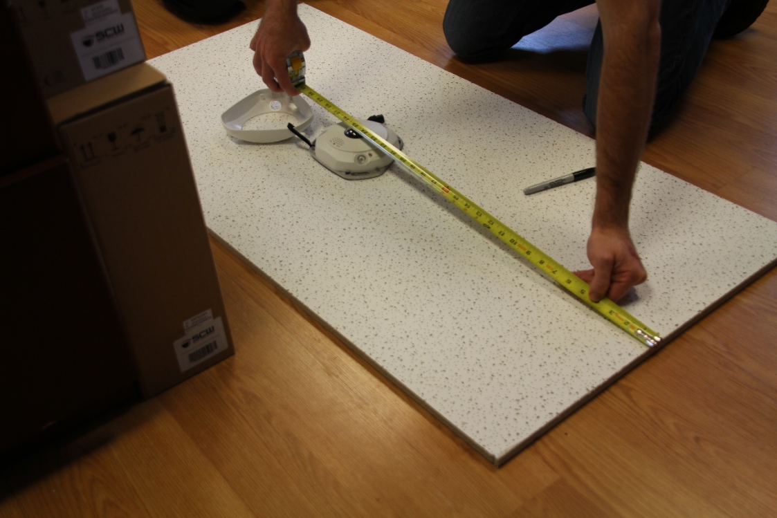 Important: Ceiling tiles have different weight tolerance limits based on their size and thickness. If the camera is too heavy, then you will need to either have the weight held up by a harness, strap tied to the true ceiling, or you can put a wood plank across the grid to support the camera's weight. Ceiling tiles sized 2x2 or 2x4 with minimum thickness of 5/8” can be used with insulation weighing up to 0.26 lbs per square foot. B. Ceiling tiles sized 2x2 with minimum thickness of 3/4” can be used with insulation weighing up to 0.5 lbs per square foot. Please check the weight tolerance of your ceiling tile and the weight of your camera before mounting. You don't want your ceiling falling down on anyone.